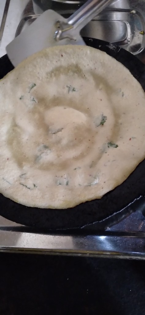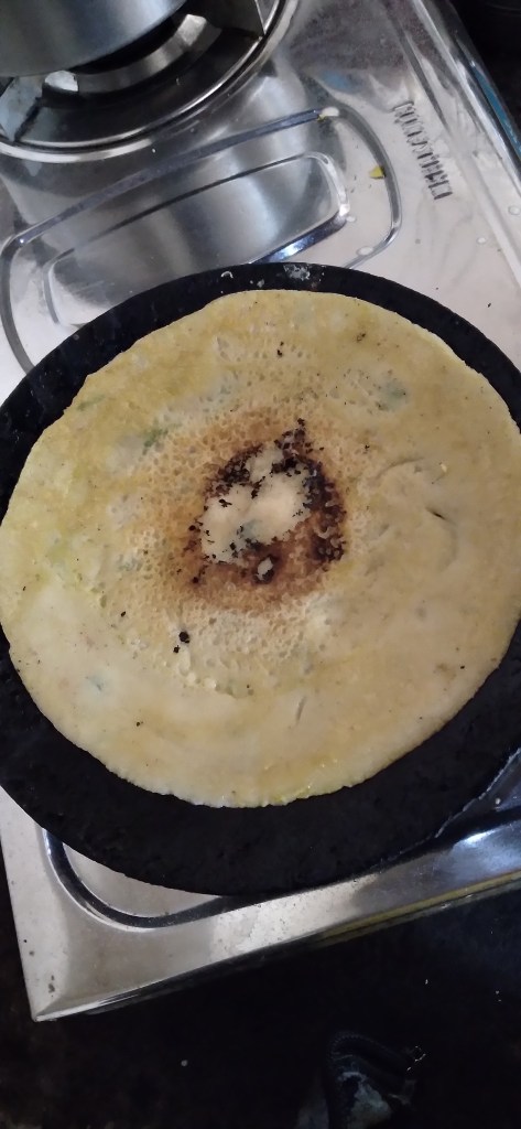 It’s a very simple recipe, and you can call this dish ‘Cheela’. I think many of my Indian readers know about this, as it’s a common Indian food. My Mom make it as breakfast for us and I never get bored, because it tastes so good.